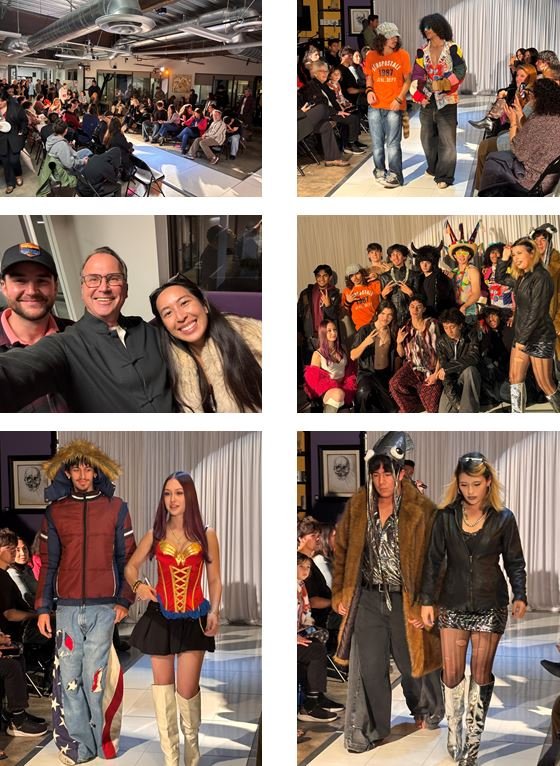 On November 20, Hub101 hosted its 2nd annual Sustainable Fashion Showcase - a runway show where vendors sold sustainable fashion products and designers, community groups, and individual community members (including students from Cal Lutheran and Granada Hills Charter School) showcased their creations. A packed room of all ages witnessed an engaging and highly energetic event. Thanks go to staff member Desserin Pereyra as well as doers Sophie Cleofas and Paulina Jensen, and recent alumna and Dorfman Scholar Elaine Vo, who first created and spearheaded the idea in 2024.