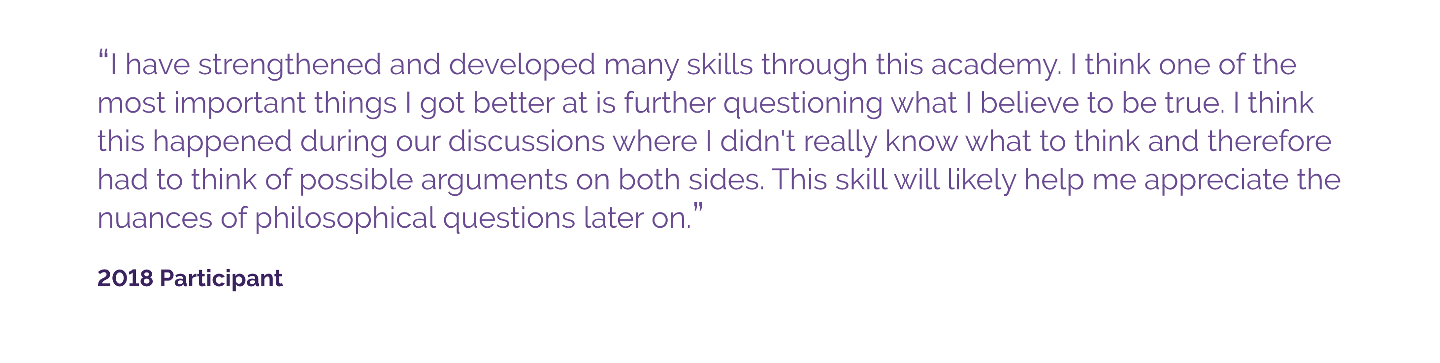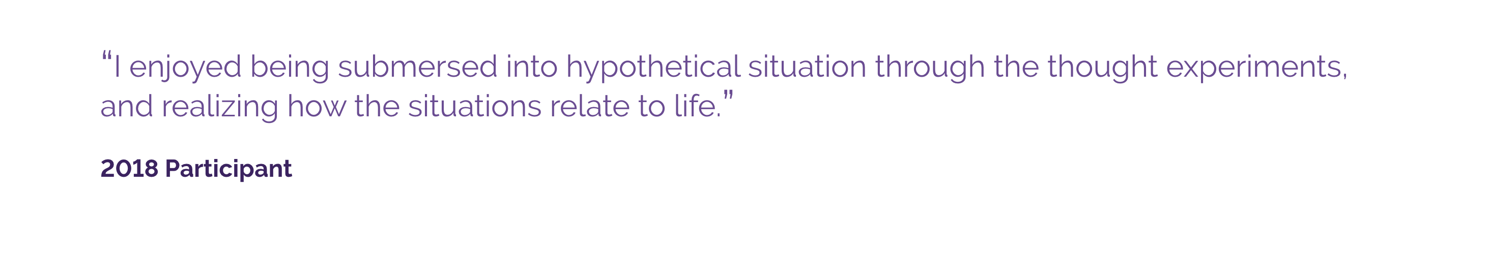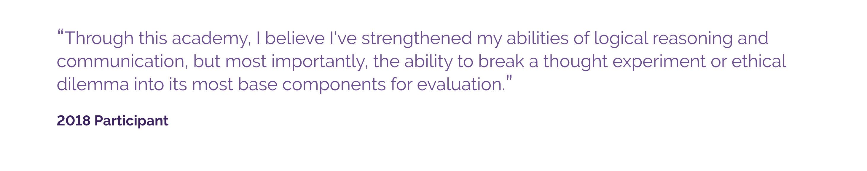 It is not necessary that students have any previous experience with the subject — the institute is intended to introduce students to the discipline and practice of philosophy. Students who do have previous experience with philosophy are welcome as well! The institute will serve them by expanding upon their familiarity with the field of philosophy and further developing their critical thinking and communication skills.